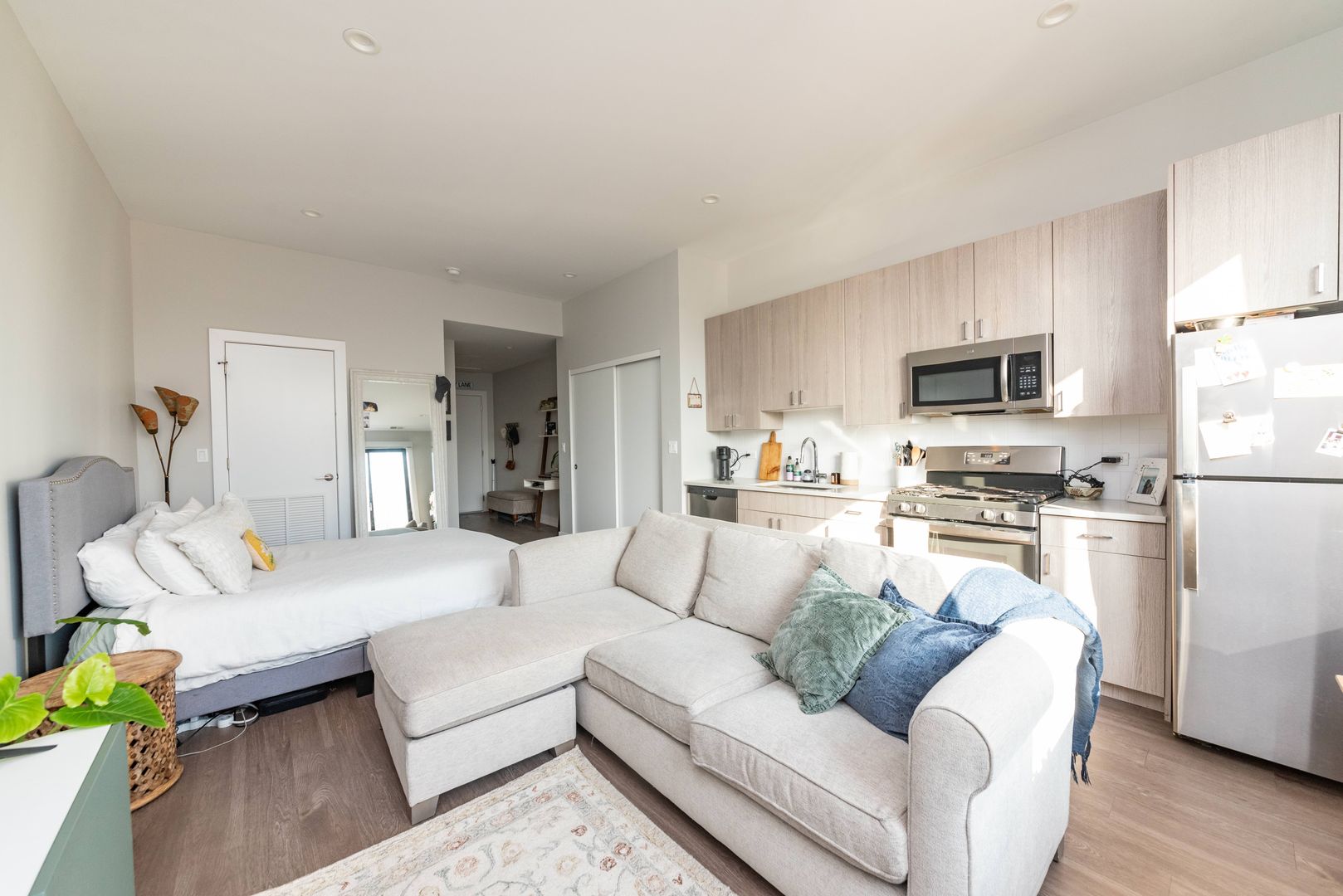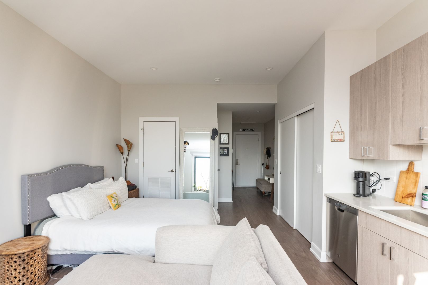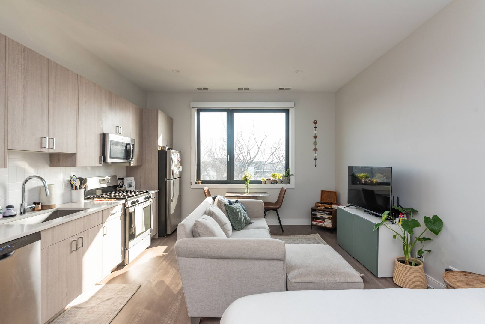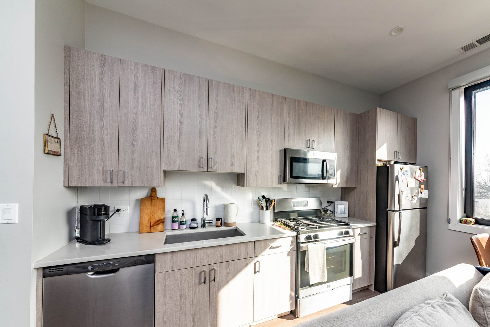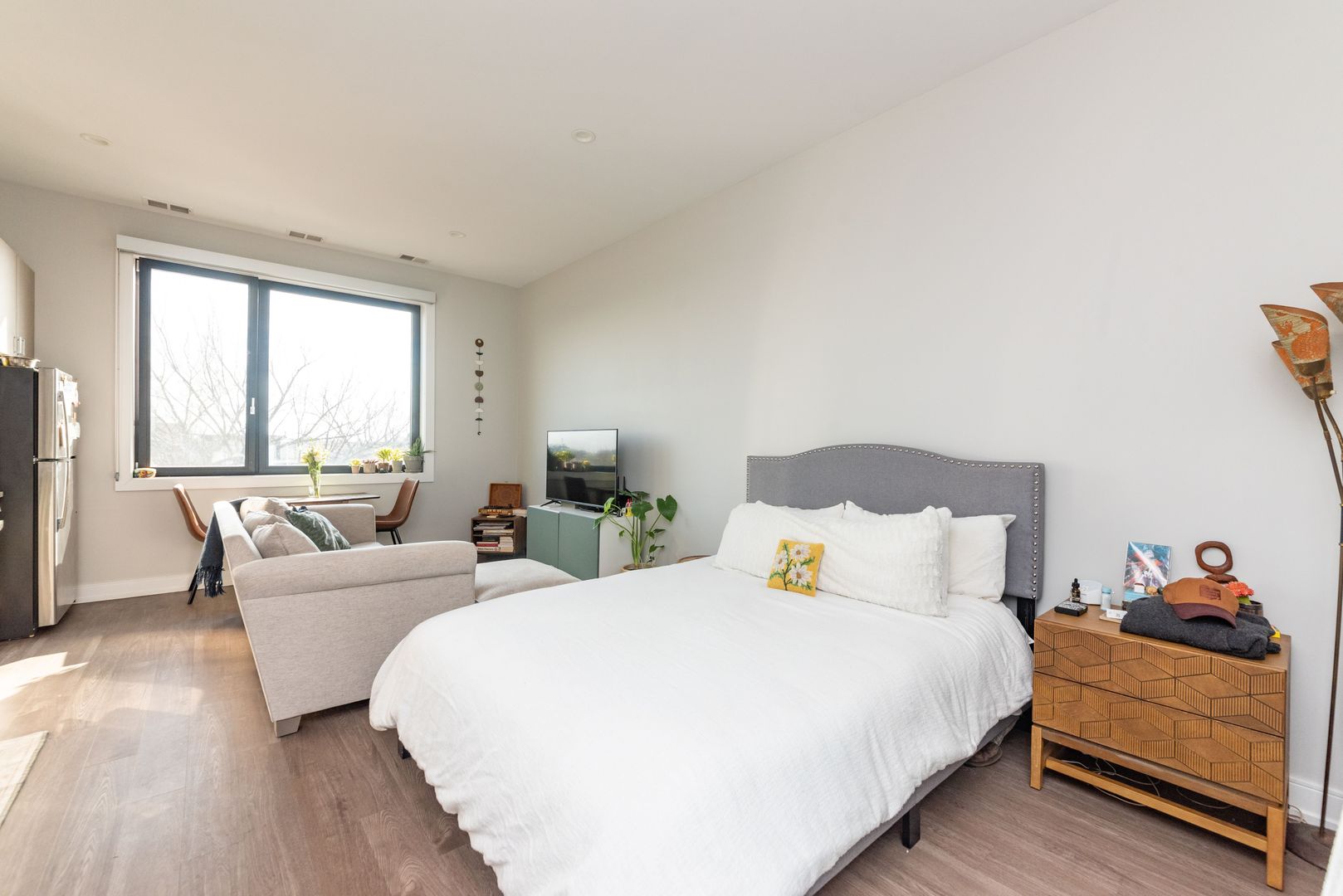 Come check out this newer construction studio in a boutique 28 unit elevator building with a HUGE common rooftop deck at the crossroads of Bucktown and Logan Square! Units feature wide-plank floors throughout, 10' ceilings, modern kitchen with 42" tall upper cabinets with soft-close doors, carrera quartz countertops, contemporary tile backsplash, and stainless steel appliances. Luxurious bathrooms feature italian porcelain tile, large vanities with quartz countertops, and fixtures by Grohe and Toto.